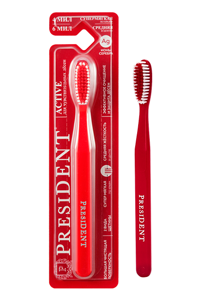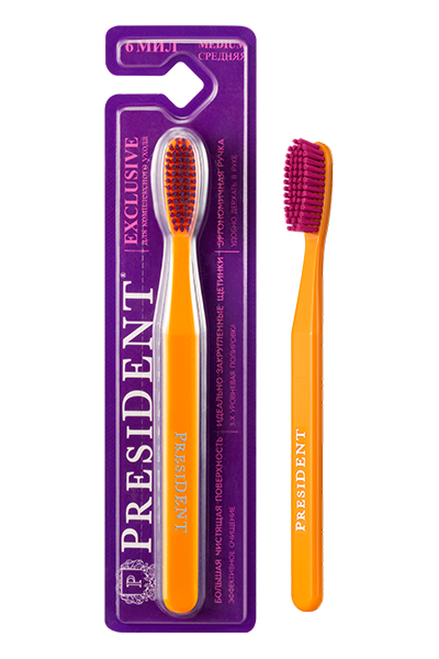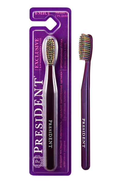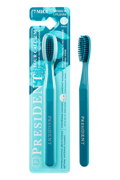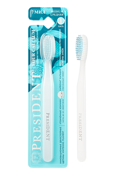 Специально подобранная жесткость щетины (8 мил*) позволяет эффективно очищать зубной налет, а также предотвращает образование зубного камня.