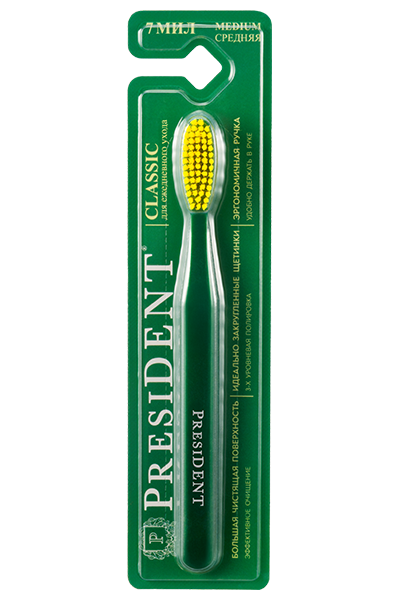 Специально подобранная жесткость щетины (7 мил*) позволяет эффективно очищать зубной налет, а также предотвращает образование зубного камня.