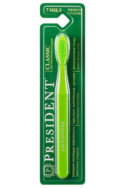 Специально подобранная жесткость щетины (7 мил*) позволяет эффективно очищать зубной налет, а также предотвращает образование зубного камня.