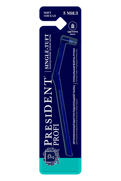 Монопучковая зубная щётка PRESIDENT PROFI SINGLE-TUFT предназначена для точечного очищения и дополнительного ухода.